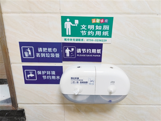 配备纸巾是好事,但如何避免浪费?江门京环环境服务有限公司相关负责人表示,除了张贴文明标语外,每座厕所都有专人负责,发现有浪费现象会及时劝导。“此外,厕纸采取一次一张的抽取方式,既避免个别市民占为己有,也保障了纸巾的卫生。”该负责人表示。