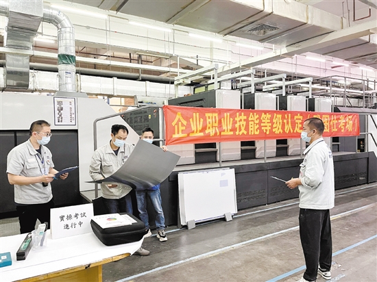 江门注重各类人才培养。图为企业职业技能等级认定实操考试现场。