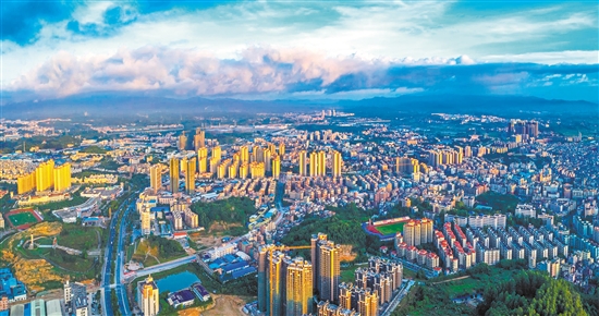 美好的蓝图,必将在不懈奋斗中变为现实,鹤山市坚定不移走高质量发展之路,奋力争创全国工业百强县,争当广东县域高质量发展排头兵。图为鹤山城区新貌。 欧蕊荣 摄