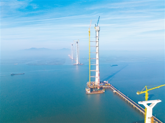 3月29日,广东交通集团发布消息,粤港澳大湾区重点工程黄茅海跨海通道项目建设取得突破性进展:黄茅海大桥东塔、西塔和高栏港大桥西塔3座主塔顺利封顶,有“小蛮腰”之称的主塔以“定海通天”之势屹立在黄茅海海域上。