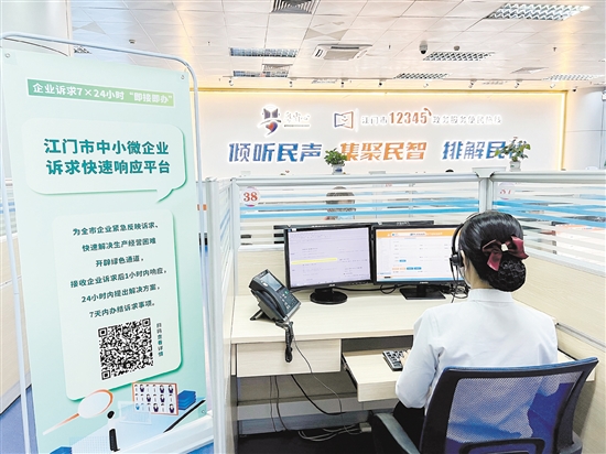 为更好服务企业,江门上线推广“中小微企业诉求快速响应平台”,构建起企业诉求“117”即接即办快速响应体系(1小时接单回复,1天内提出解决方案,最迟7天内办结)。平台自2022年6月1日上线以来,群众满意度达99%以上,实现经济发展与社会治理同步提升。