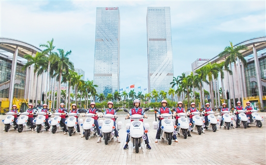 2022年,江门组建起4100多人的专职智慧网格员队伍。图为江门智慧网格员整装待发。
