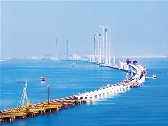 “超级工程”黄茅海跨海通道从2018年底谋划建设,仅筹备一年半时间就实现开工。该项目建成后,将与港珠澳大桥、深中通道、南沙大桥、虎门大桥等共同组成大湾区跨海跨江通道群,构筑起珠江口东岸及港澳地区辐射珠江口西岸、粤西乃至大西南地区的主要高速通道。目前,关键控制性工程黄茅海大桥和高栏港大桥5座主塔全部封顶。 毕松杰 粤交建宣供图