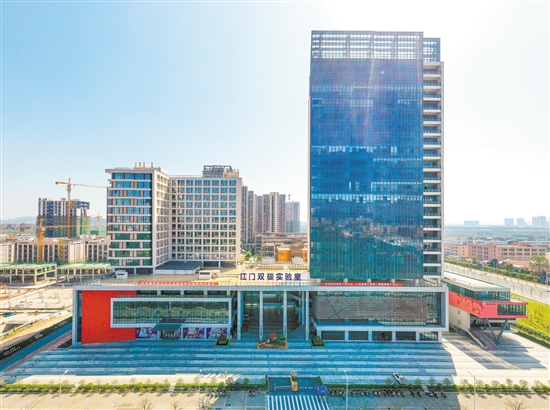与香港科技大学(广州)共建的江门双碳实验室,在全省率先构建“双碳实验室+双碳产业园”政产学研融通发展新模式,现已集聚100多名国内外“双碳”领域科研人员,吸引了国能氢能(低碳)研究中心、航天科工深圳工研院、新能源电池低碳研究中心等近10家科研机构进驻。