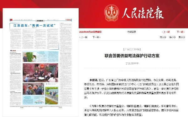 江门6部门出台《关于进一步健全和完善新时代侨益司法保护行动方案》