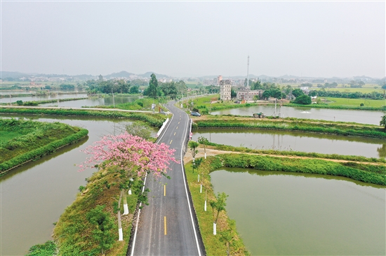 江海区通过“四好农村路”建设,串联荷香生态园(广东省最大的连片荷花主题公园)、都市万亩生态园、乡村绿廊、礼东主灌河生态防护林(联合国教科文组织誉为“人与自热最佳结合林”)等热门旅游景点,打造城市后花园,让市民不出城区即可享受山水田园风光;鹤山市则通过“四好农村路”建设,串联带动“广东十大最美乡村旅游目的地”共和镇来苏村、“第一批广东省历史文化游径”宅梧镇人民抗日解放军司令部旧址、“省级湿地公园”古劳水乡等旅游线路,有效促进当地乡村旅游业的发展。
